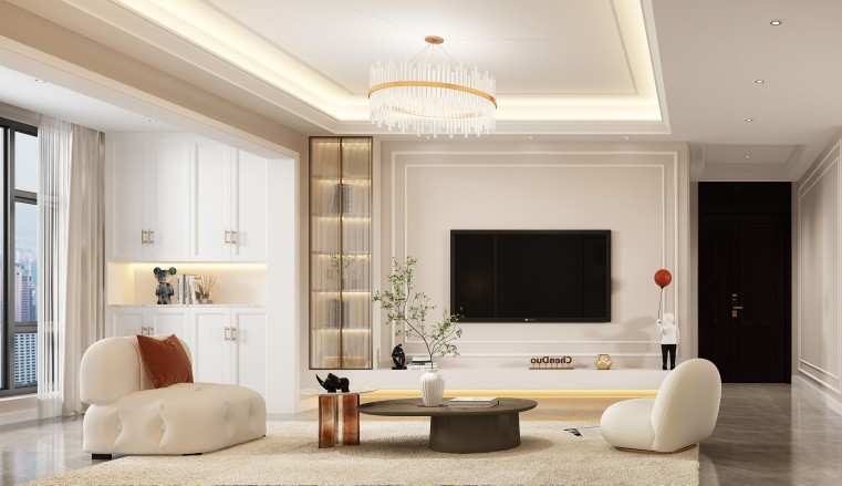 在客厅内,最常见的悬浮设计就是电视柜。悬浮设计的电视柜,为空间注入了更加轻盈纯粹的视觉观感,凸显现代化居室的风格,也增加了电视背景墙的立体感。